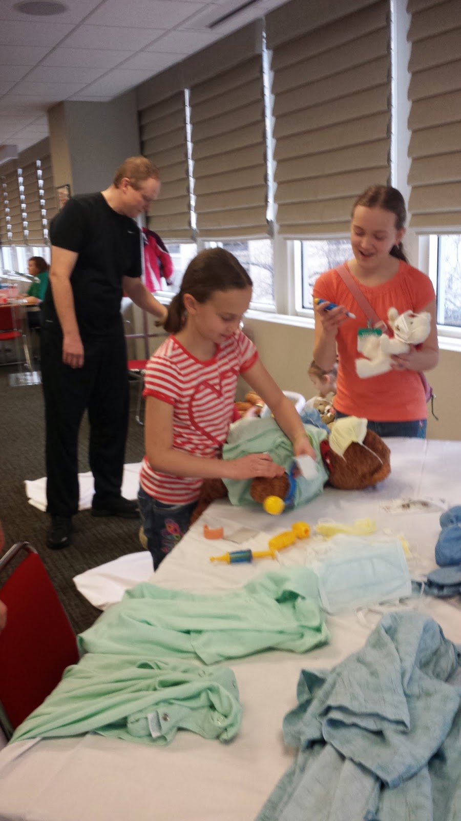 As I mentioned earlier, the girls and I went to visit Wayne this morning. Wayne wanted me to bring them early today because RIC was having a teddy bear clinic for kids. I'm so thankful that they offered this special program for us to participate as a family. The girls each got to pick out a teddy bear, dress their "patient" up, and take care of them. There were crafts, activities and games for them to participate in with their bears. The girls had a blast. Sophia and Naomi even operated on a bear. They said the bear had a brain tumor, so they were able to work with the volunteers to cut open the bears head and get it out. I think this was therapeutic for the girls. I sense that they feel comfortable talking openly about everything going on, which I think is good. They are trying to process some really hard things. After staying at the clinic for about an hour with our bears, we left and went upstairs to play another family game of aggravation. Wayne won today's game.