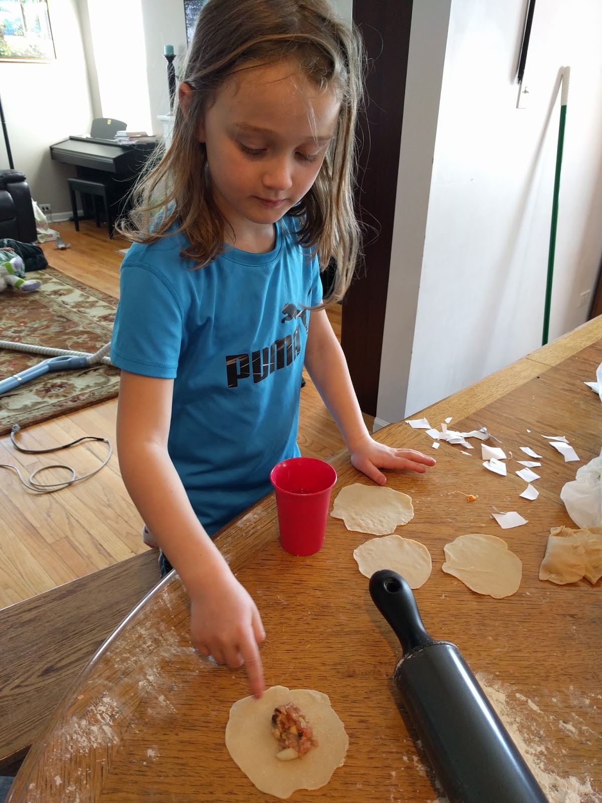 Yesterday we spent the day preparing our meal for today. Wayne and I decided that this Easter, we would have Chinese food. We want the boys to feel at home and eating Chinese food makes them so happy. I asked them yesterday if they had ever made baozi (steam buns) or jiaozi (dumplings). They said they had wanted to cook in China, but they were never allowed to. So, Friday night before church, I took a trip to the Chinese store to buy the ingredients we needed to make a Chinese meal at home. All the kids helped me roll out steam buns and dumplings. Although the girls and I helped put together steam buns before, I have never made the dough or filling before. Yesterday was an adventure, but it was a success! We made homemade pork dumplings, ground pork and cabbage steam buns, and BBQ pork steam buns. I quickly made a batch of noodles with the leftover vegetables I had cut up for the dumplings and steam buns. (all the recipes will be listed at the very bottom of the post for those who are interested!!)